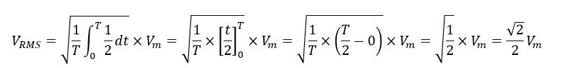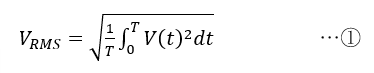 となります.①式の実効値と見比べると,⑤式前半の積分の部分は実効値の2乗であり,