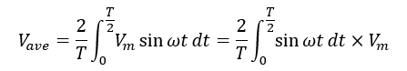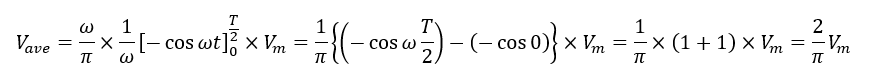 となります.2/π≒0.637なので,平均値Vaveは尖頭値Vmの約0.64倍と言えます.