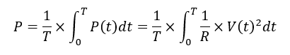 P=IRMS×VRMS=VRMS2/R=IRMS2×R