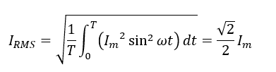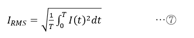 電圧の実効値と同様に,電流も実効値で表すことができます.実効値IRMSの式は,
