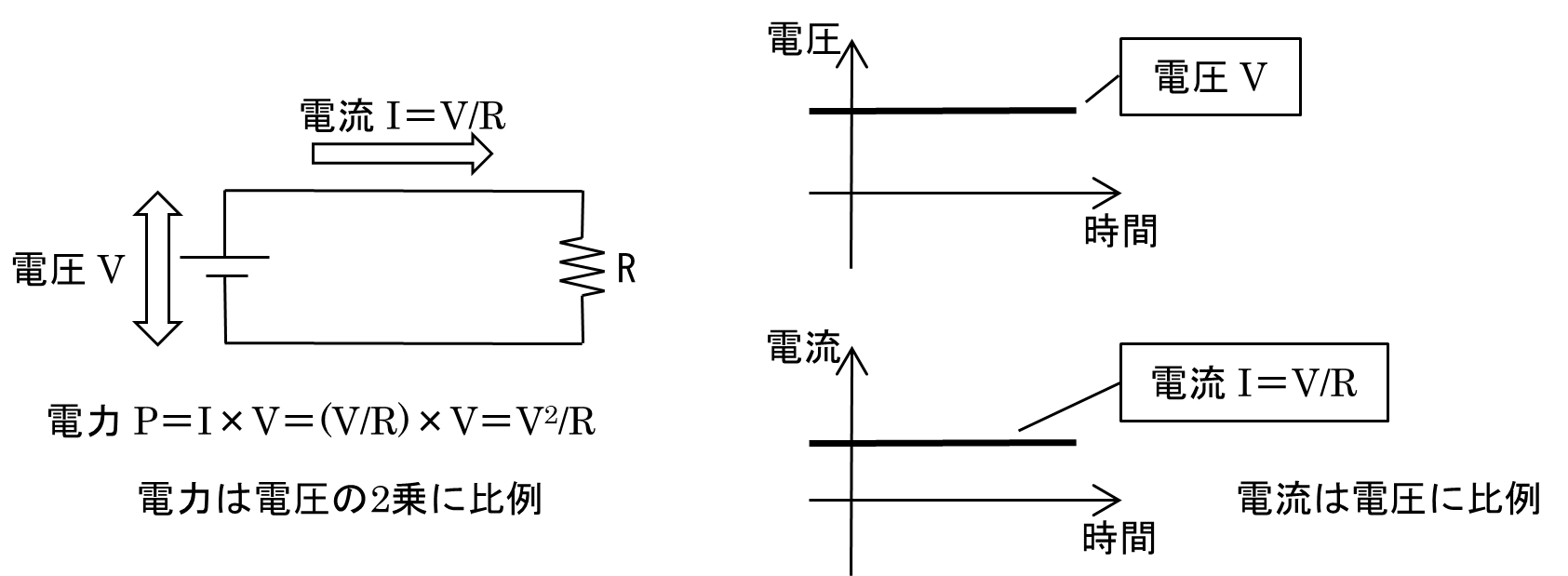 です.すなわち,電力は電圧の2乗に比例します.