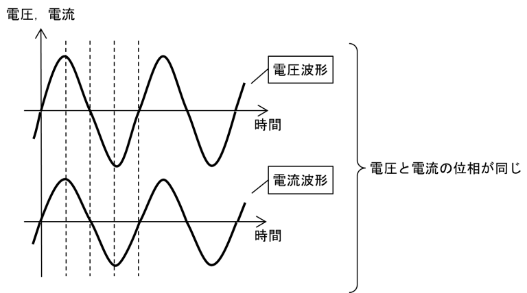 図6 抵抗負荷における電圧と電流の位相