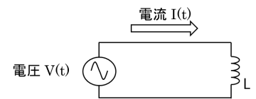 回路の負荷がインダクタンスLのとき,誘導負荷と呼びます.図7(a)のように,誘導負荷に交流電圧V(t)をかけると交流電流I(t)が流れます.Lには電流の位相を遅れさせる働きがあり,図7(b)のように電圧より電流が90°遅れます.