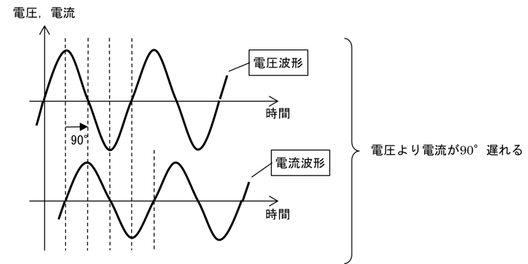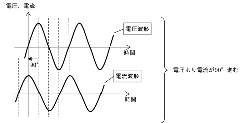 図9 容量負荷における電圧と電流の位相
